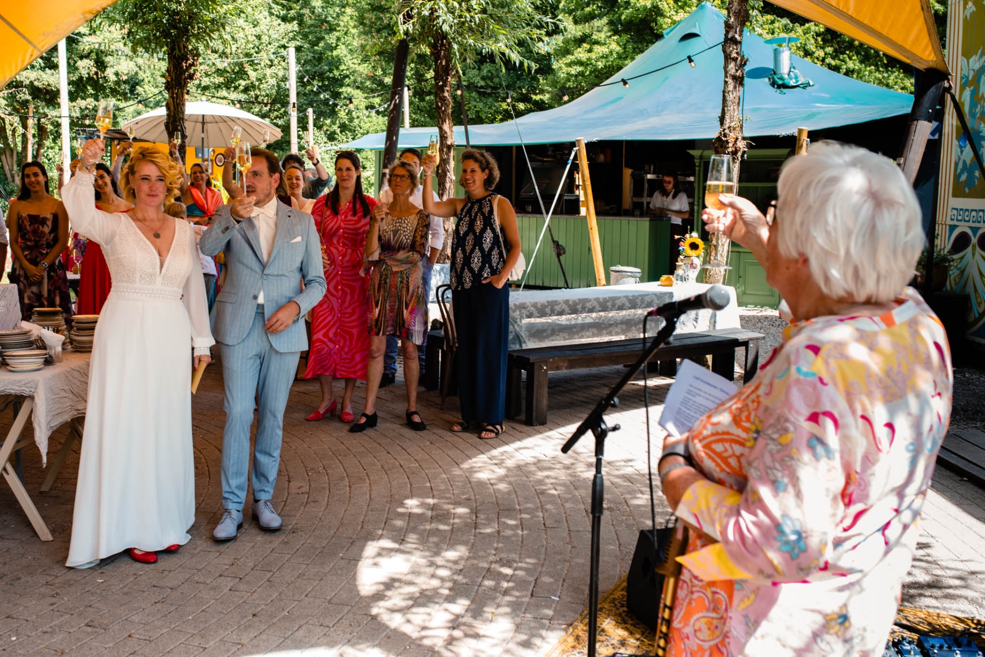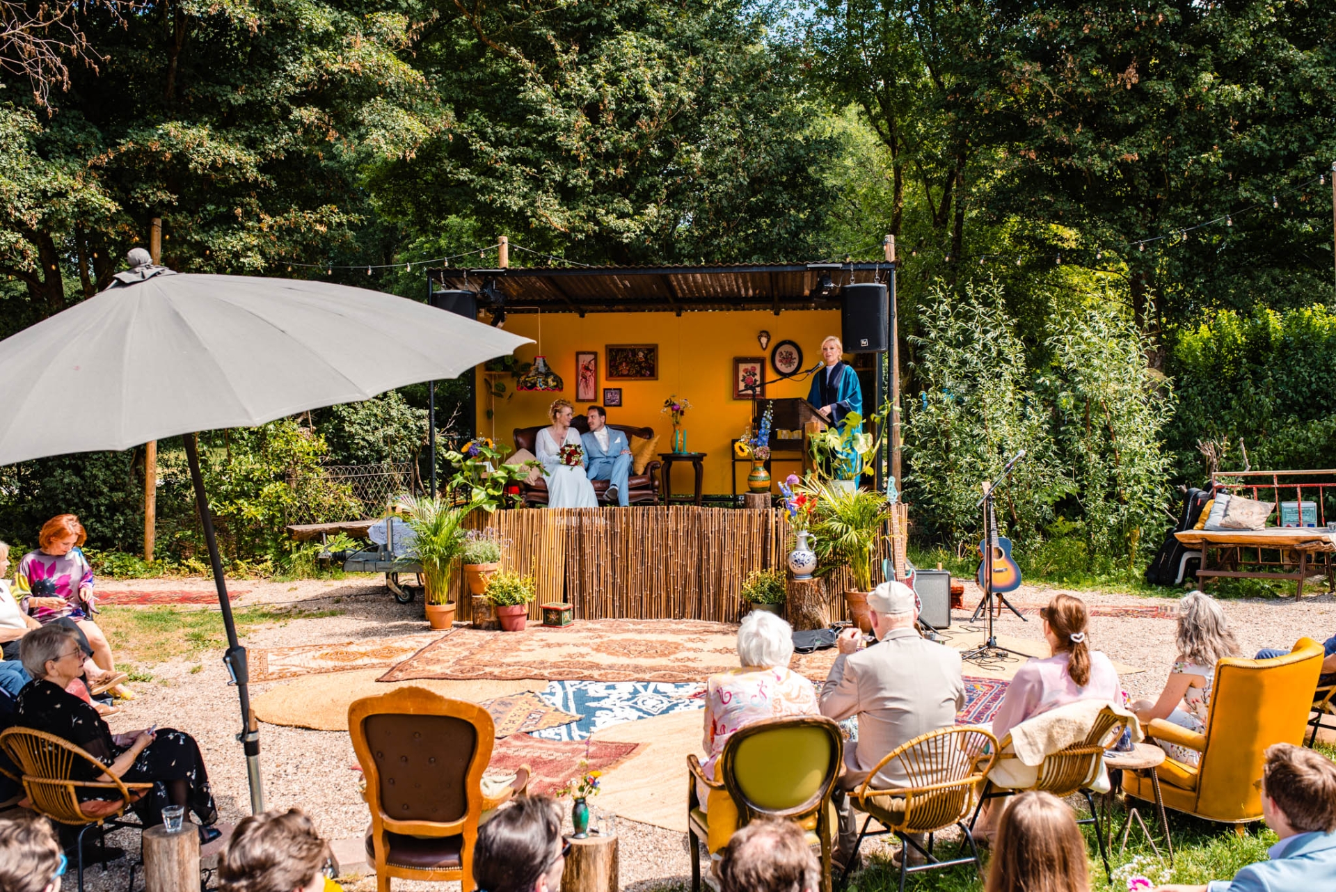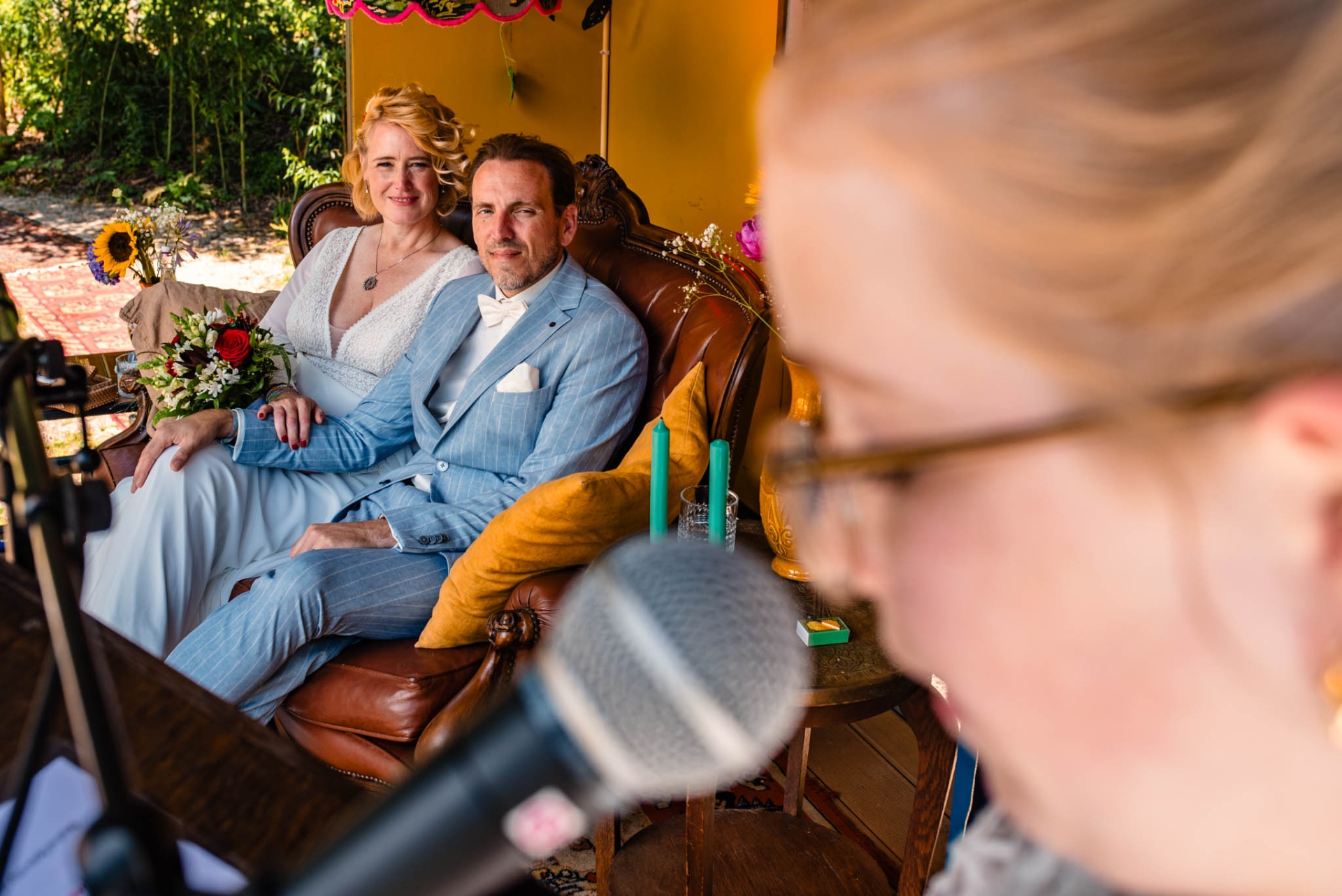 Peter en Carlijn wonen niet in de buurt, maar rondom Utrecht. Voor hun bruiloft sliepen ze daarom op Camping De Lievelinge, in een huurling — wel allebei apart. Een fijne, ontspannen start van de dag