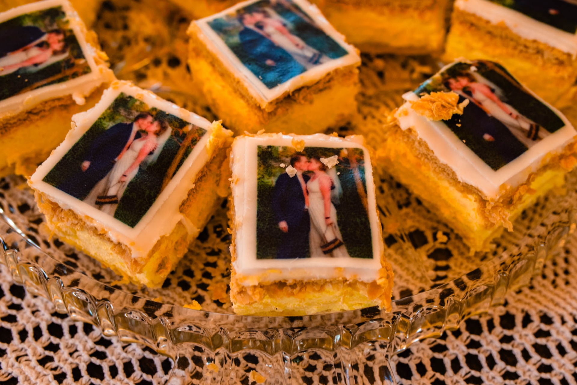 Dit stel heeft een grote liefde voor tompoucen — dus die moesten er zijn. Peter haalde ze ’s ochtends nog op… al stond hij eerst bij de verkeerde HEMA 😄